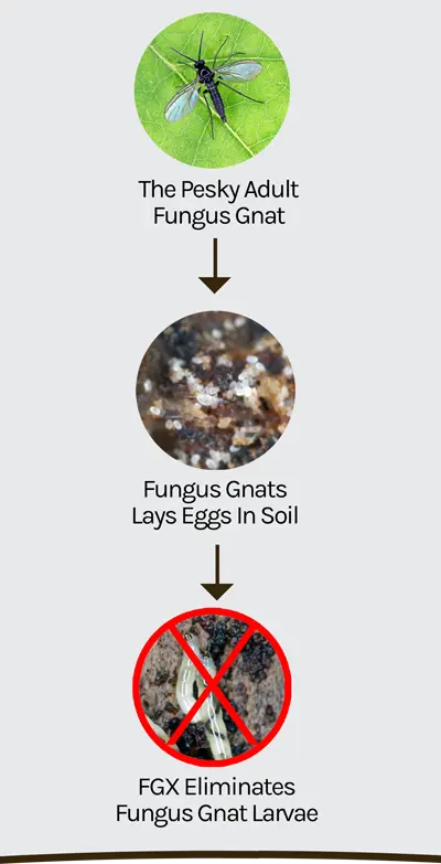 Fungus gnat larvae ingest FGX stopping their life cycle. Stops the problem at the source.